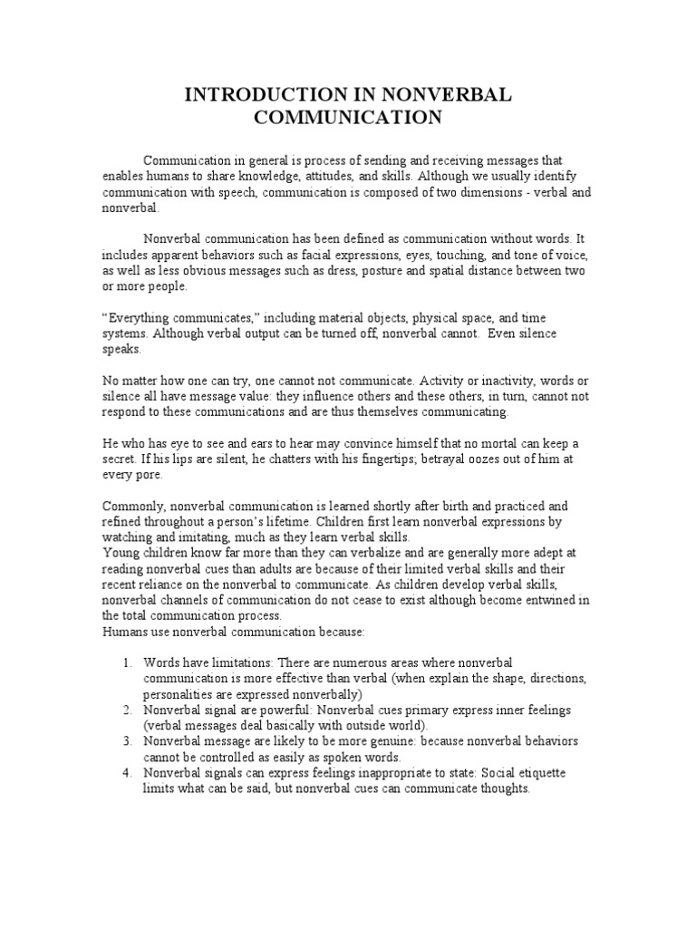 Non-verbal communication. People communicate not only with words, communication essay introduction. There are a lot of other ways to convey your thoughts and feelings, such as eye contact, facial expression, gestures, posture, tone of voice.