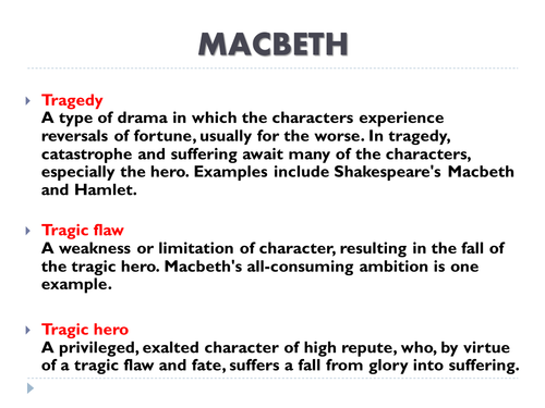 Macbeth was also written to persuade King James I to reopen the …show more content… Witch- hunts were popular and many executions took place. This was because King James I considered himself an expert on witchcraft and therefore Shakespeare portrays tragedy of macbeth essay witched as sub tragedy of macbeth essay standard human and mysterious in order to win favour with the king. When practising witchcraft, the witches appear to be strong and aggressive. Bad weather such as thunder, lightning and rain is associated with unhappiness or, in the case of the witches, evil.